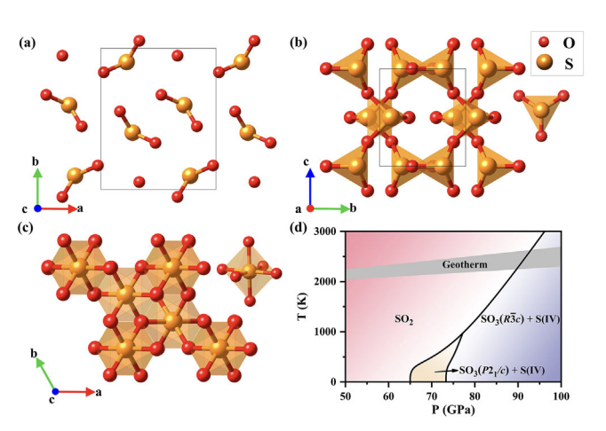 Materials once suffered at high-pressure and high-temperature (HPHT) conditions often exhibit exotic phenomena that defy conventional wisdom. The behaviors of sulfur dioxide (SO2), one of the archetypal simple molecules, at HPHT conditions have attracted a great deal of attention due to its relevance to the S cycle between deep Earth and the atmosphere. Here we report the discovery of an unexpected disproportionation of SO2 via bond breaking into elemental S and sulfur trioxide (SO3) at HPHT conditions through a jointly experimental and theoretical study. Measured x-ray diffraction and Raman spectroscopy data allow us to solve unambiguously the crystal structure (space group R-3c) of the resultant SO3 phase that shows an extended framework structure formed by vertex-sharing octahedra SO6. Our findings lead to a significant extension of the phase diagram of SO2 and suggest that SO2, despite its abundance in Earth’s atmosphere and ubiquity in other giant planets, is not a stable compound at HPHT conditions relevant to planetary interiors, providing important implications for elucidating the S chemistry in deep Earth and other giant planets. The research results have been published in Phys. Rev. Lett. 128 , 106001 (2022) |